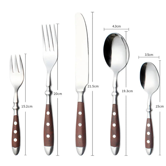 Classic Stainless Steel Cutlery Set with Wooden Handle